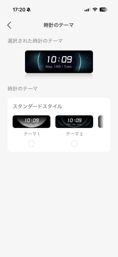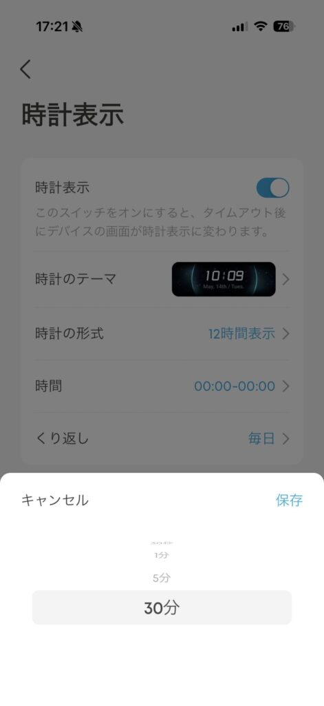 その他にも充電モードや時計表示の切り替え、スクリーンセーバーの開始時間など、ディスプレイ本体でできる操作は、アプリ上でもすべて行えるようになっています。