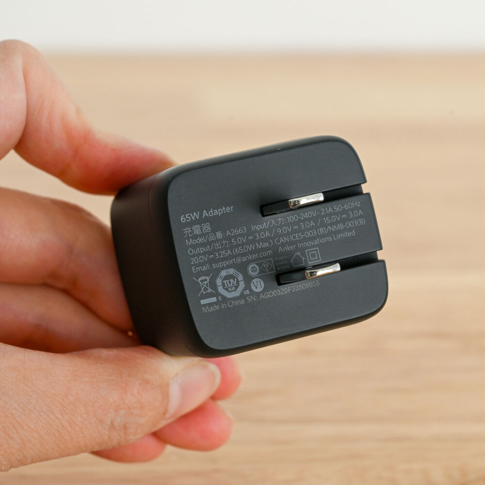 充電器本体以外にケーブルと65W充電器がつき、充電器は名機の「Anker Nano II 65W」なので地味にうれしいですね。