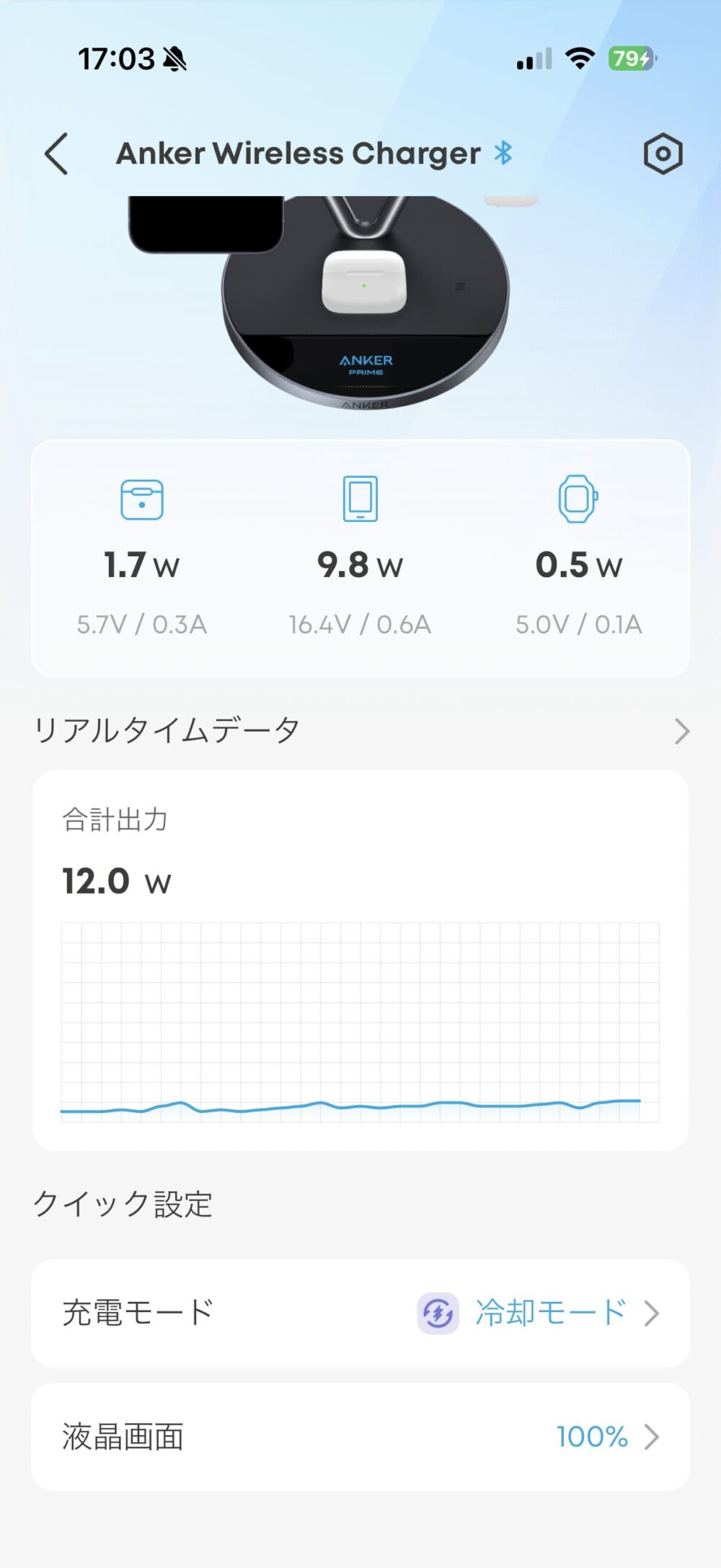 「Ankerアプリ」とBluetoothで連携すればなんと、充電器の情報をスマホアプリ上で見れるようになります。