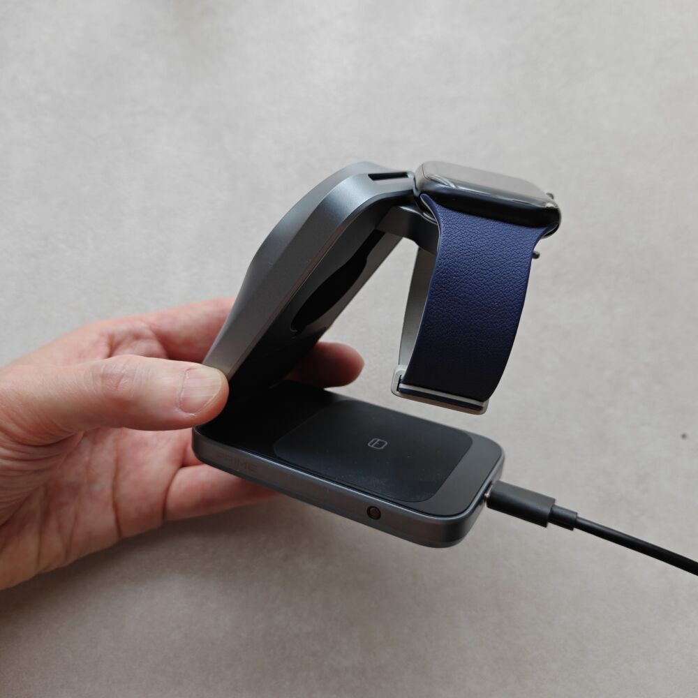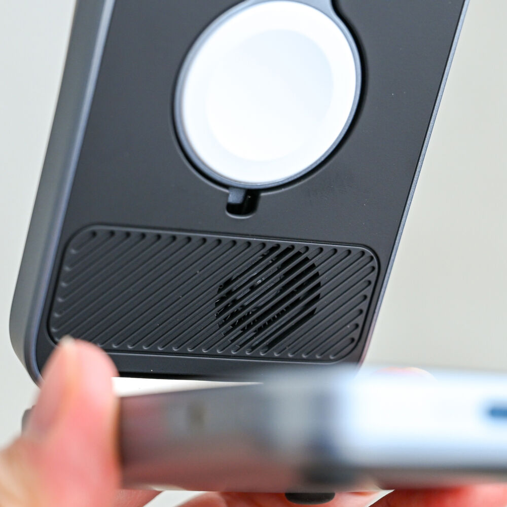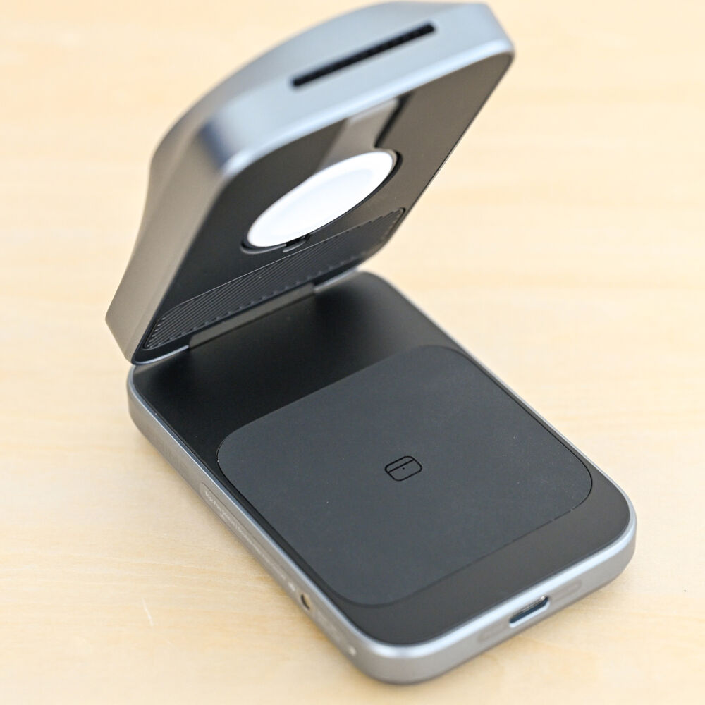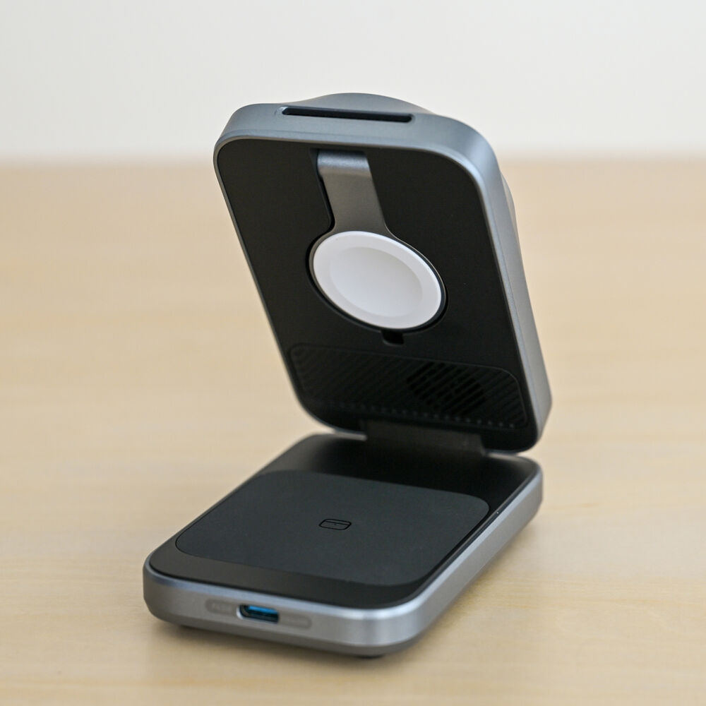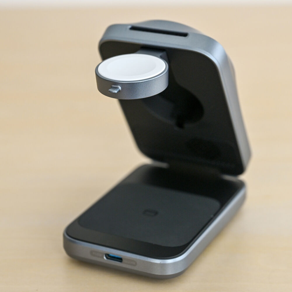 さらに、吊り下げ型のApple Watchパッドと広めのイヤホン充電パッドで、両デバイスのワイヤレス充電も安定しています。