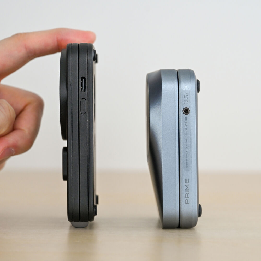 手のひらに収まるサイズで、同じくファン付きのESRよりコンパクト。