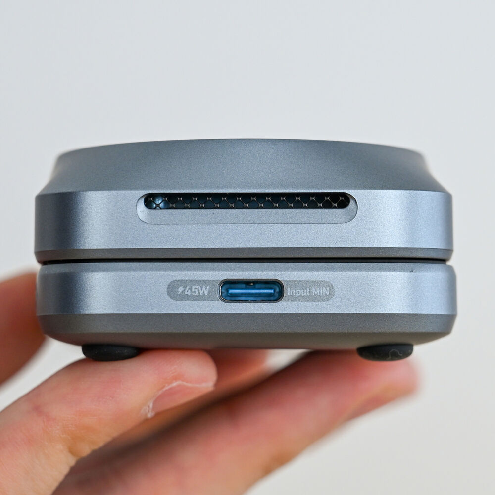 天面にはUSB-C入力ポートとエアフロー用スリットを配しています。