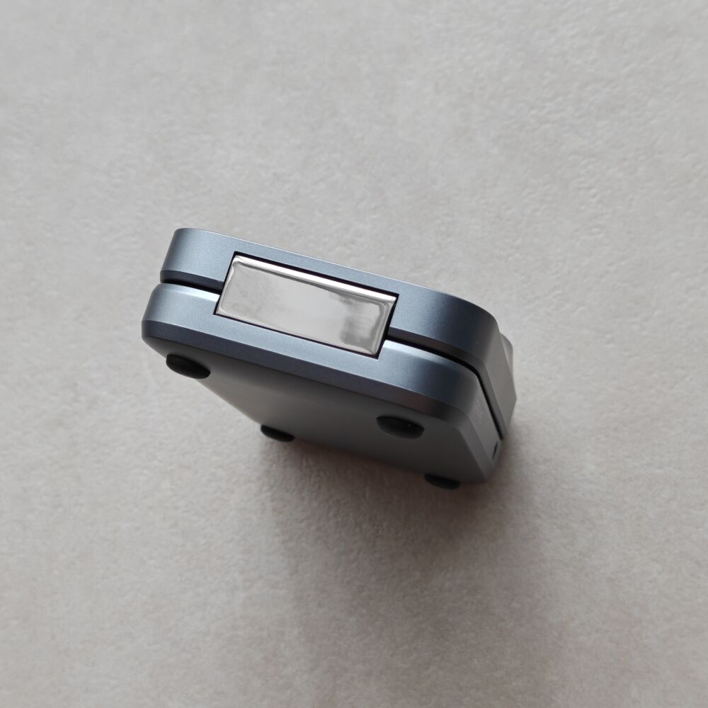 Apple Watch充電パッドがなかなかおもしろい機構で、パッドの真ん中を押し込むと、浮き上がって開きます。
