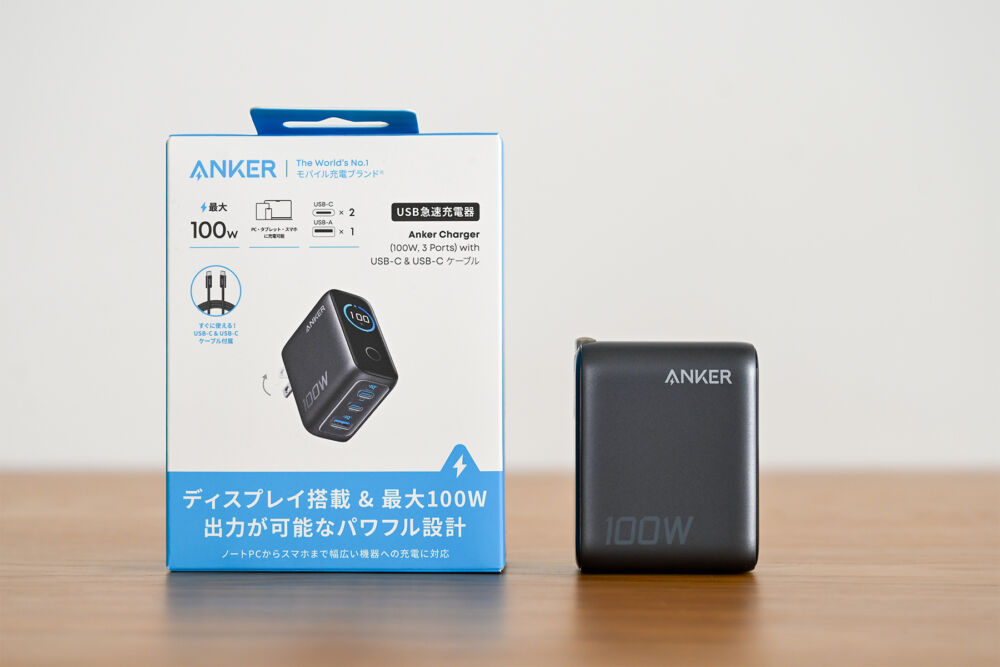 Anker Charger (100W, 3 Ports) with USB-C & USB-Cケーブルをレビューしていきます。