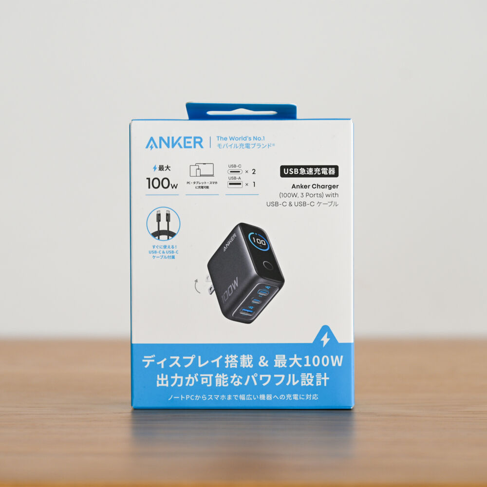 Anker Charger (100W, 3 Ports) with USB-C & USB-Cケーブルをレビューしていきます。