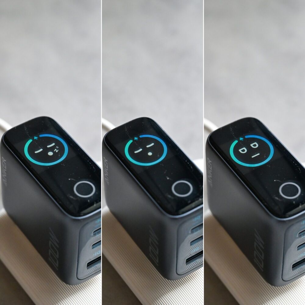 待望の100Wクラスで、ディスプレイ機能はAnker Charger (140W, 4 Ports)と共通の、コロコロ変わる表情がかわいいタッチ式。
