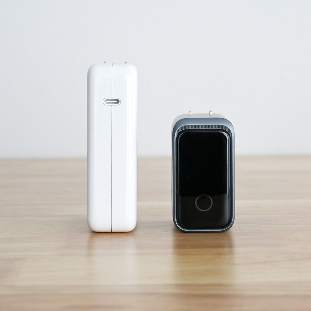 同クラスのAnker 711 Charger (Nano II 30W)やBELLEMOND Ultra Mini 30Wとほぼ同等であり、これまでプラグむき出しでないと実現できなかった極小サイズを、格納型で実現できるようになりました。