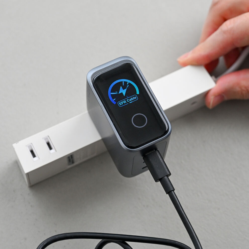 最大出力に達したときや、最大240W対応のUSB PD EPRケーブルを挿した際に、躍動感ある表示に切り替わるのもおもしろいです。