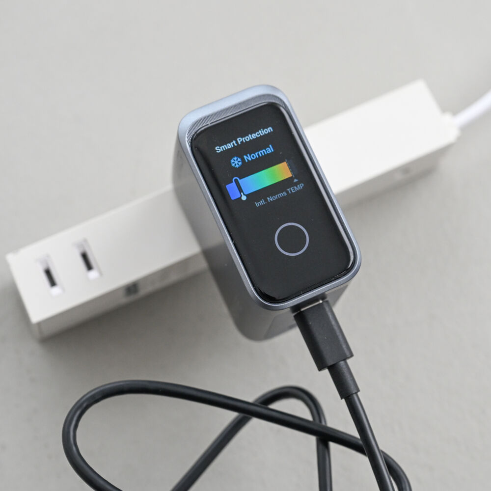「Anker Prime Charger」と冠するだけあり、所有欲を満たす剛性・質感に仕上がっており、前面にはごく限られたモデルのみ搭載するディスプレイをそなえています。