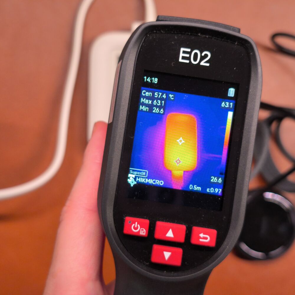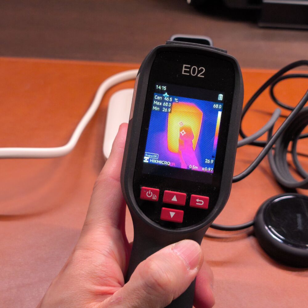 複数ポート同時充電を30分間行った後にサーモグラフィーカメラを当て、何℃になっているのかを計測していきます。