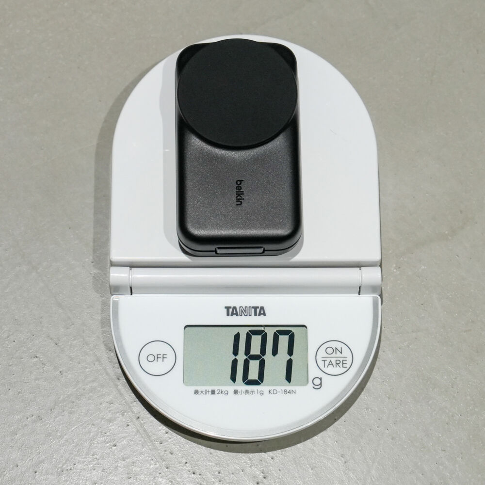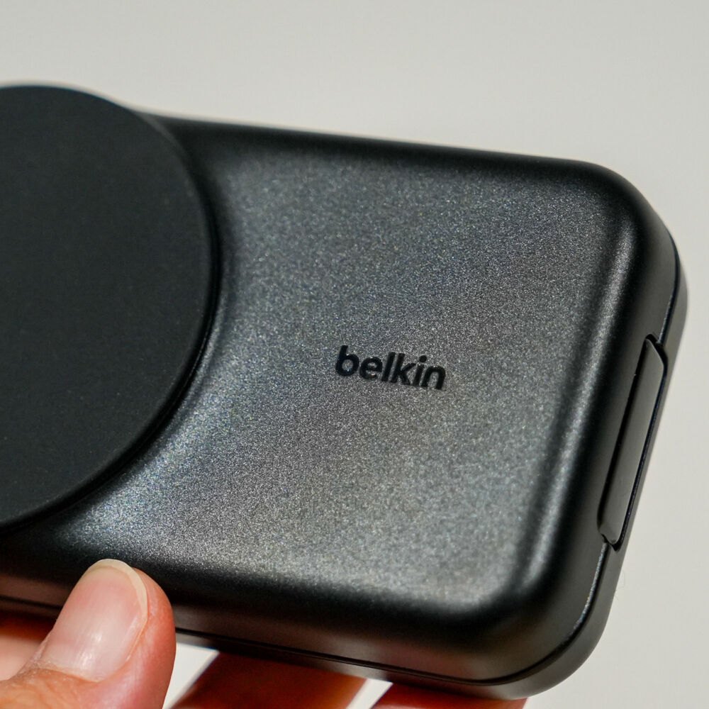 造りのよい同社のBelkin Qi2 25W Magnetic Charging Dockを見ているだけに、ややプラスチッキーな感じもちょっと気になりました。