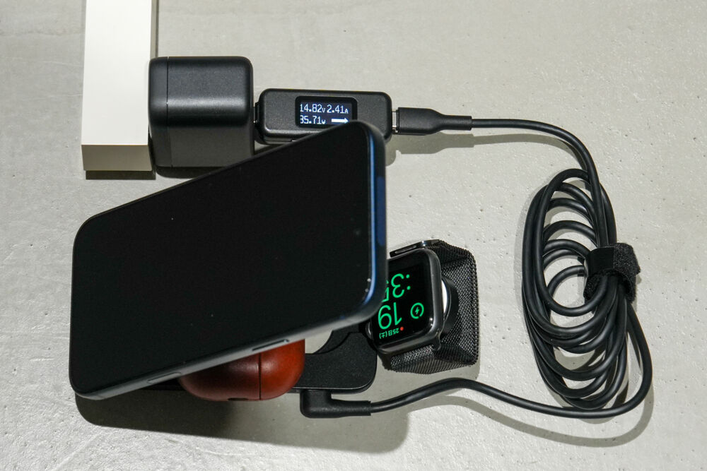 それでいて、スマホ・イヤホン・Apple Watchの3点セットを現時点の最高出力で充電できる頼もしさがあります。
