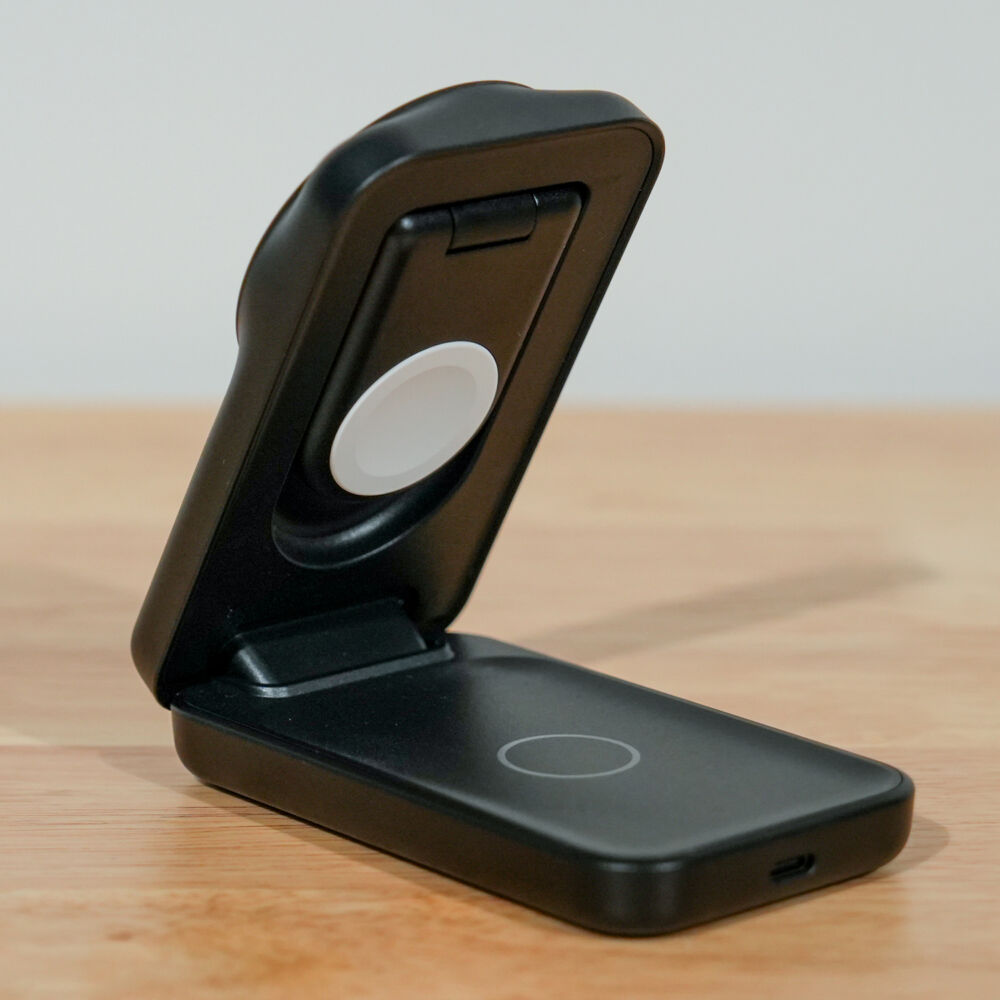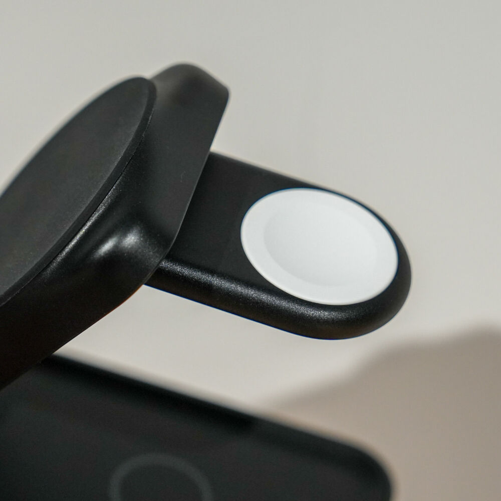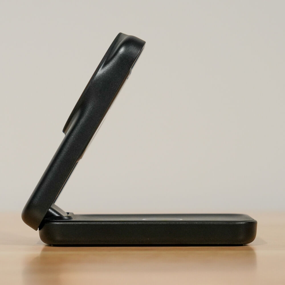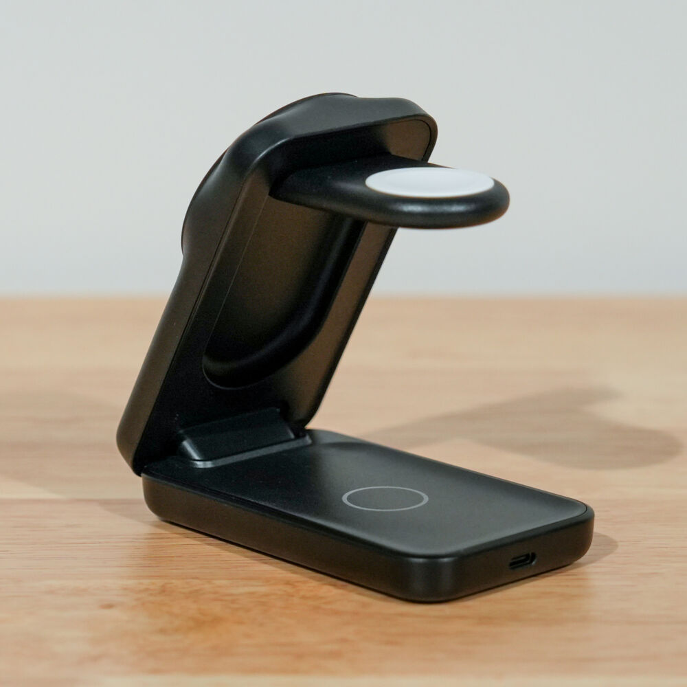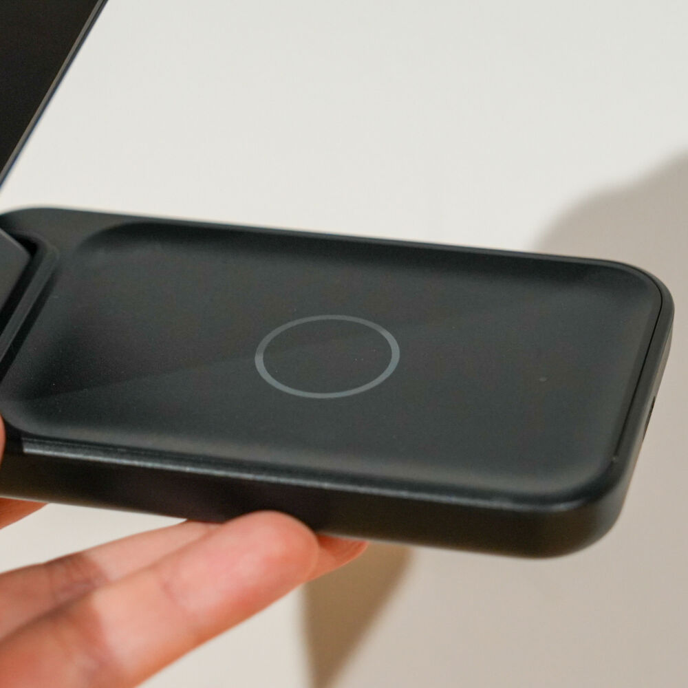 表面はプラスチック感がややあるものの、手堅くまとまった3-in-1ワイヤレス充電器です。