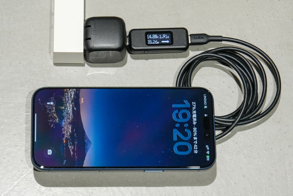 さすがに冷却ファン搭載のBelkin Qi2 25W Magnetic Charging Dockほどではないにせよ、携帯型としてはかなり速い充電速度を発揮していました。