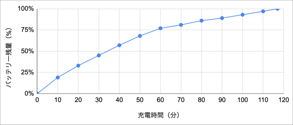 同じく17 Proでカラからフル充電までにいたる時間を測ったところ、117分で満充電に。