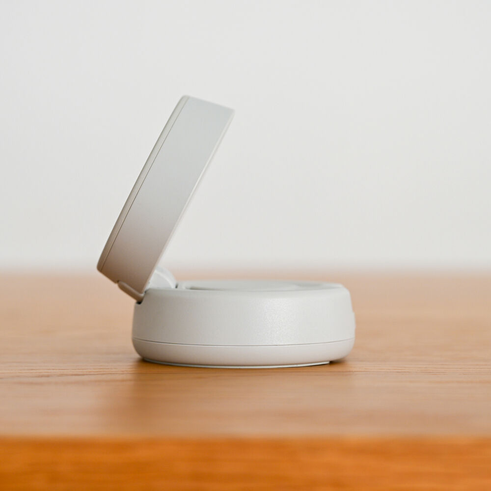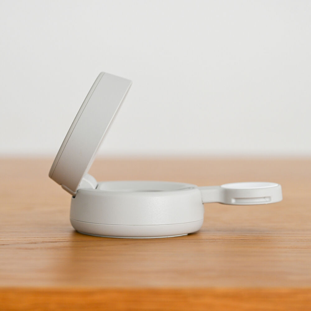 最大の魅力は、コンパクトミラーのようなサイズ感から、スタンドにもパッドにもなる「変形ギミック」。