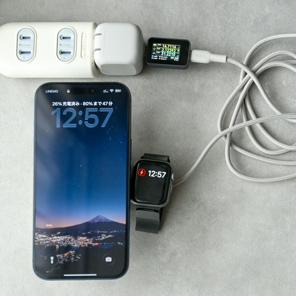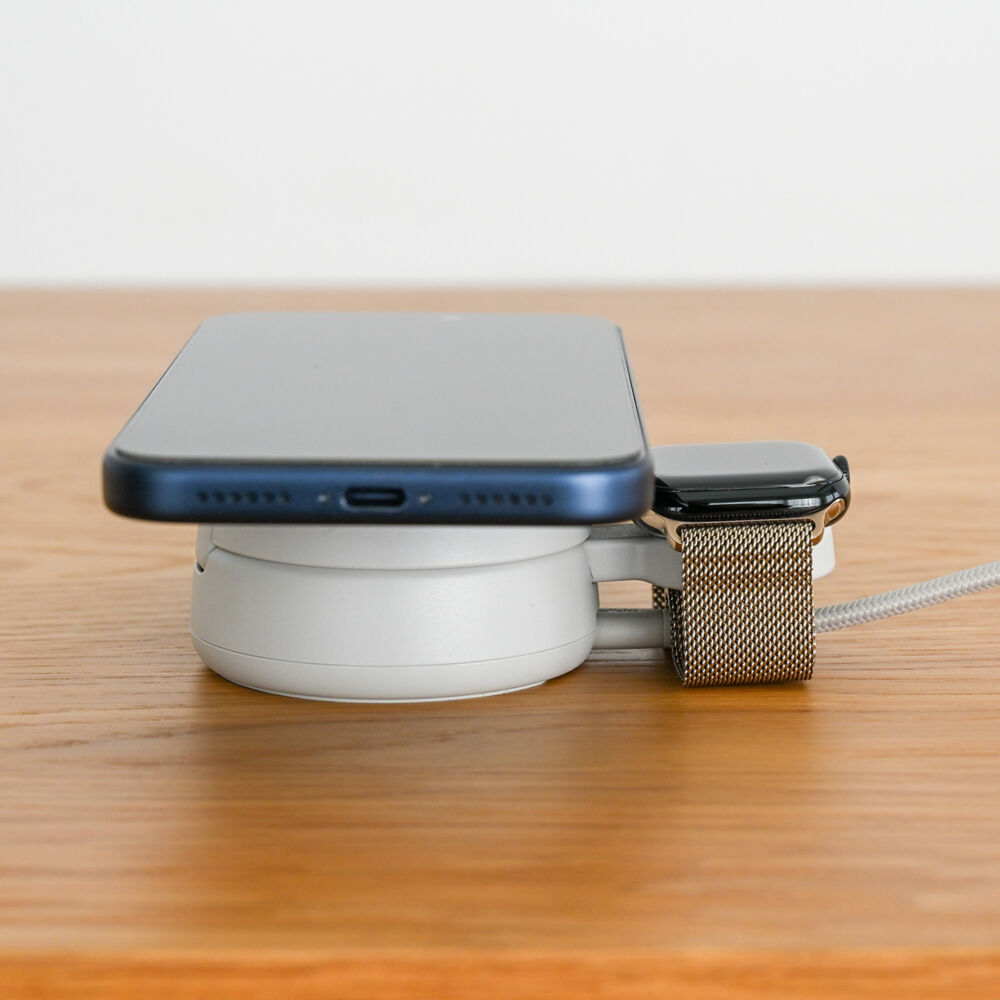 「イヤホンの充電頻度は低いから、スマホとWatchをとにかく快適に充電したい」というユーザーにとって、まさに最適解の充電器です。いざとなればイヤホンも充電できますし。