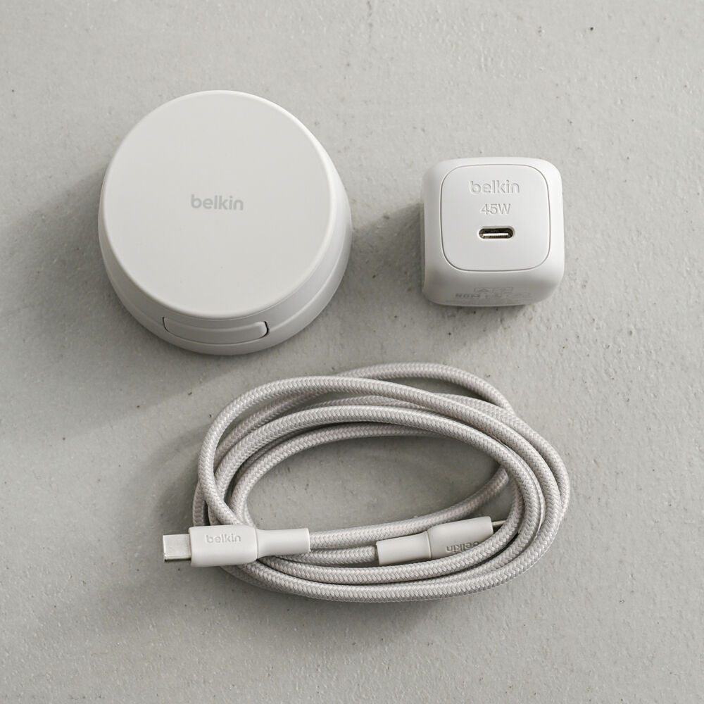 Belkin UltraCharge Pro 2-in-1変形式マグネット充電器25Wの外観と付属品