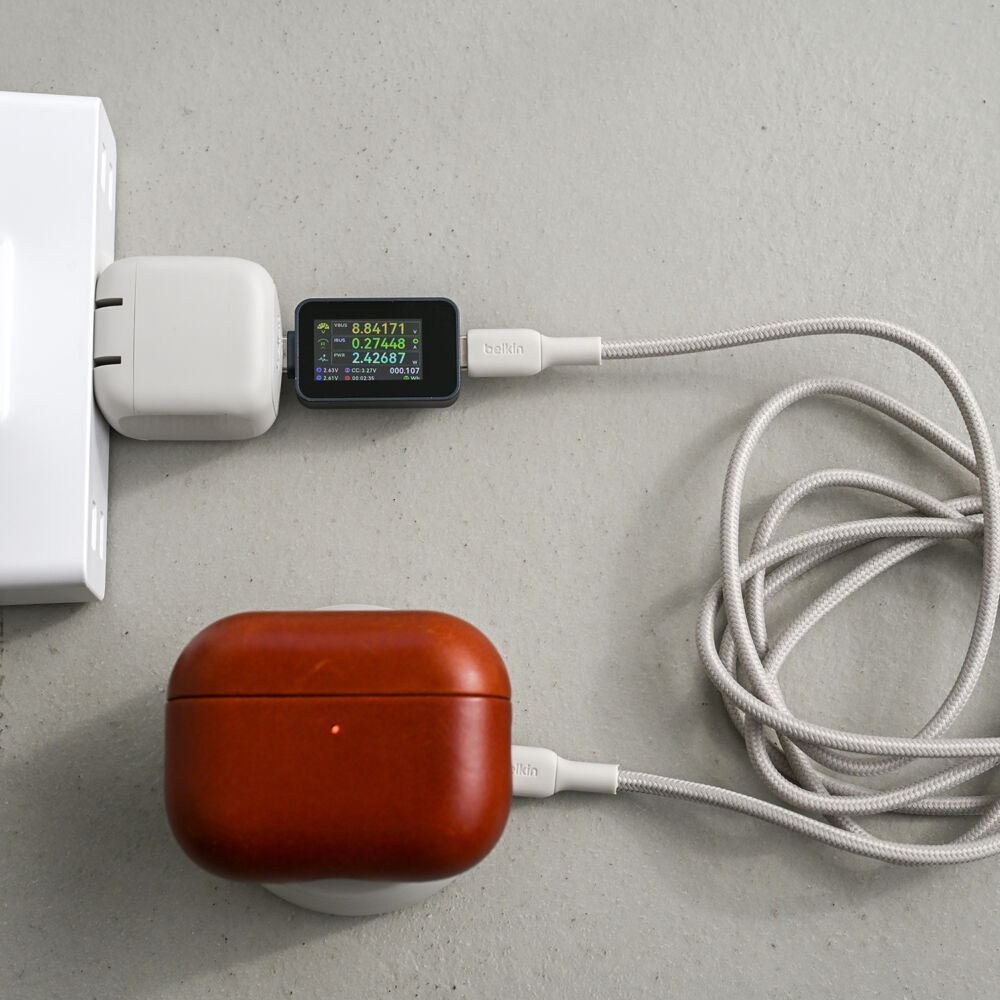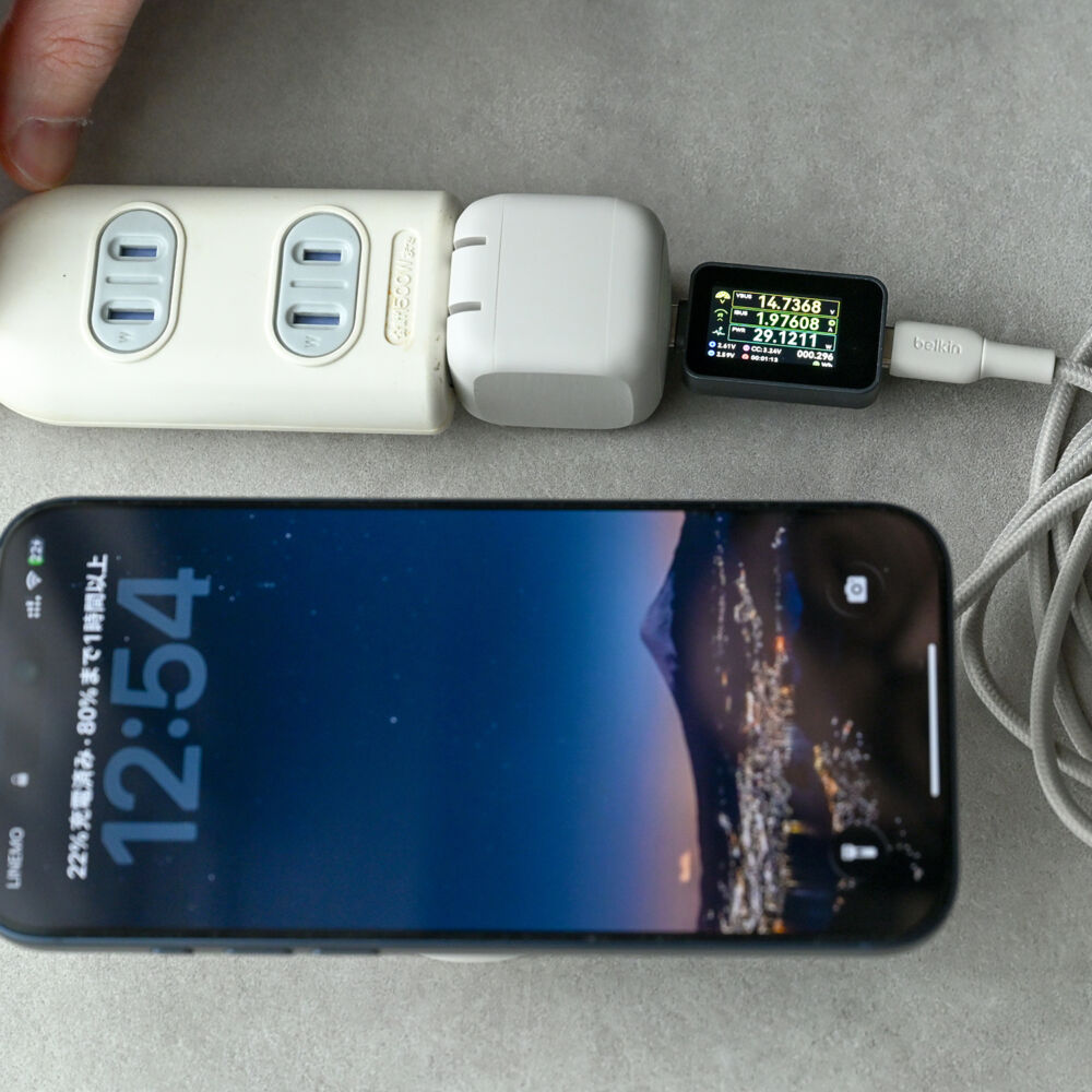 このコンパクトな充電器がかなり秀逸で、これ単体でスマホやMacBook Airの充電器としてもふだん使いできるすぐれもの。