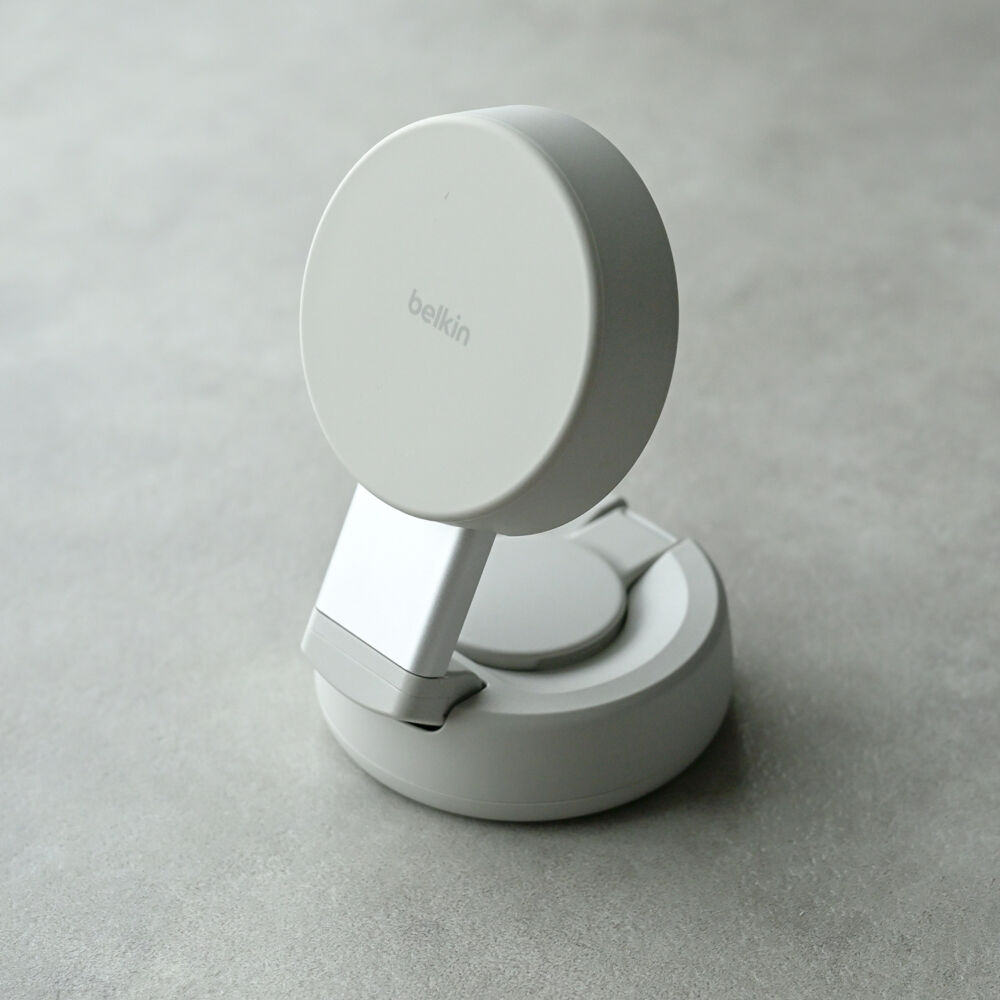 BelkinのUltraCharge Pro 2-in-1変形式マグネット充電器25Wは、Qi2 25W対応スマホとApple Watchを2台同時充電できるワイヤレス充電器です。