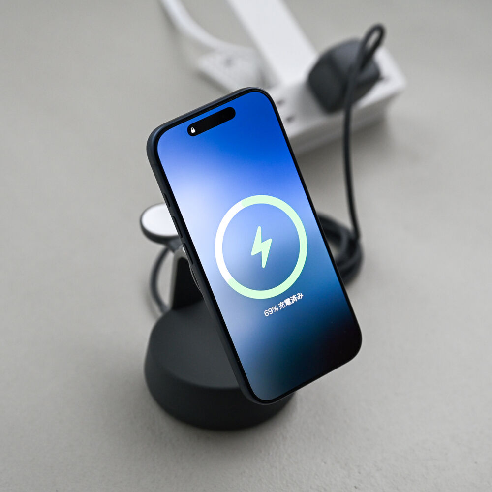 - Qi2 25W対応スマホ・Qi対応イヤホン・Apple Watchの同時充電可能