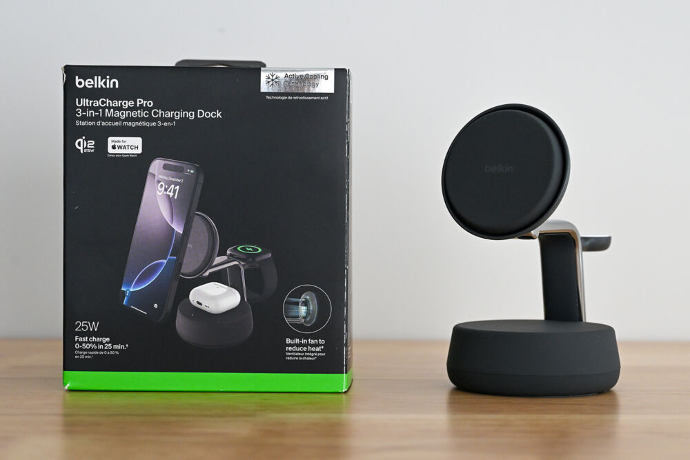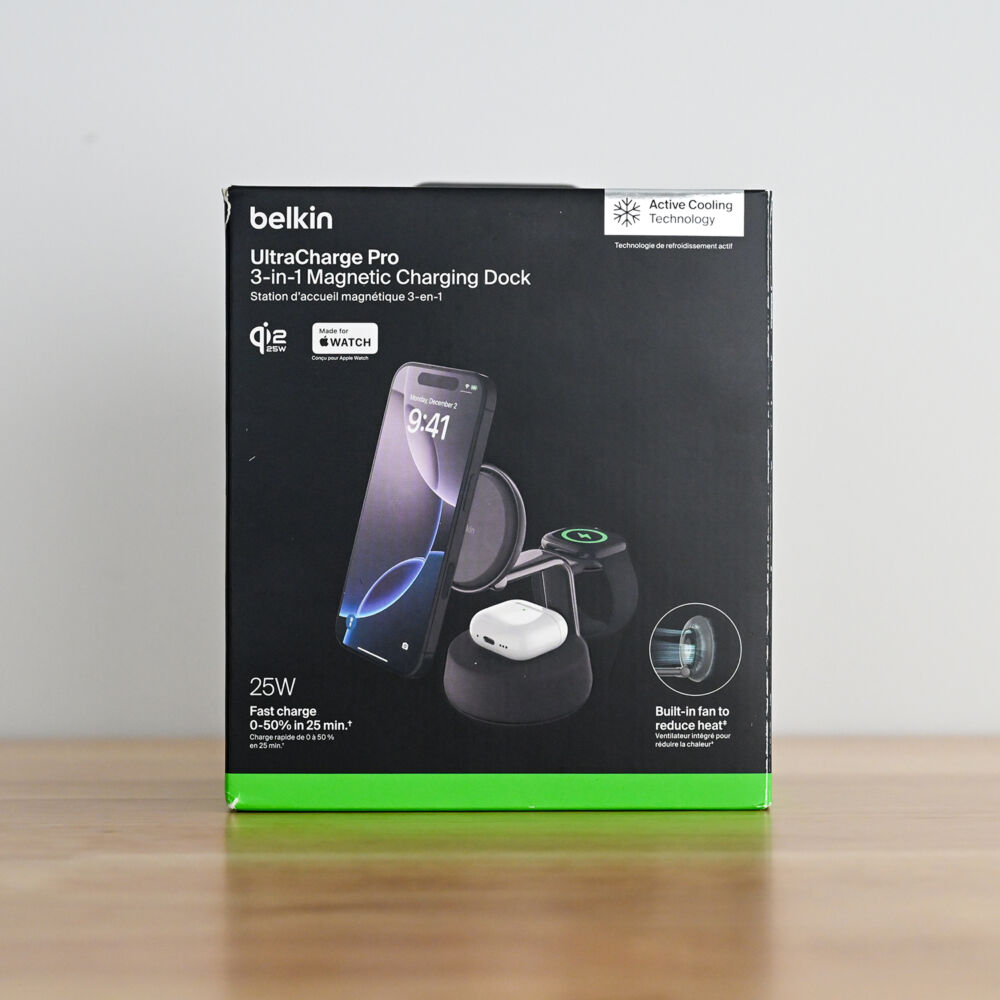 UGREENやESRなどさまざまな選択肢が増えている中、3-in-1タイプの本命機ともいえるのが「Belkin Qi2 25W Magnetic Charging Dock」です。