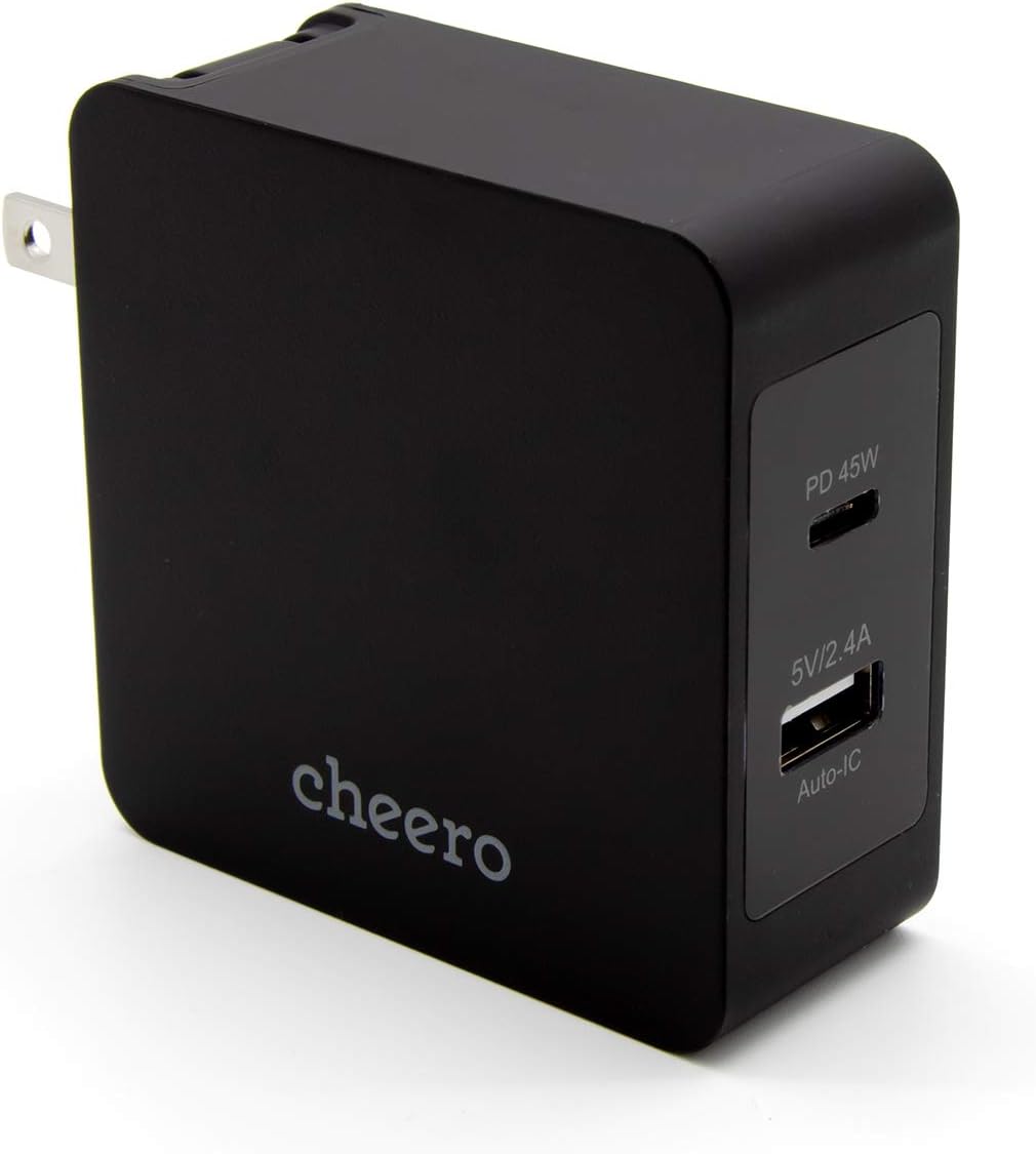 そこでおすすめなのが「cheero 2 port PD Charger USB-C PD 45W + USB-A」です。