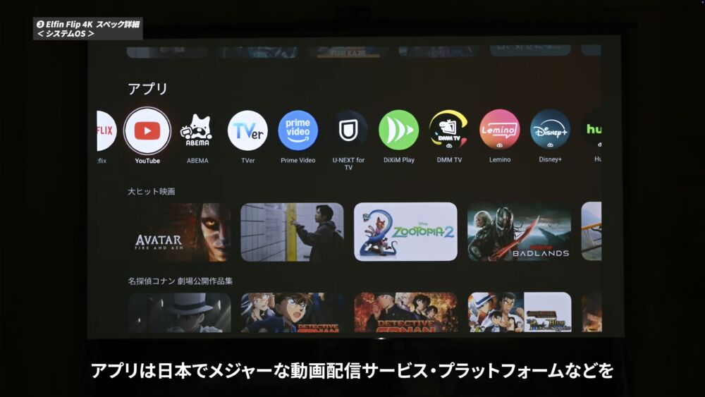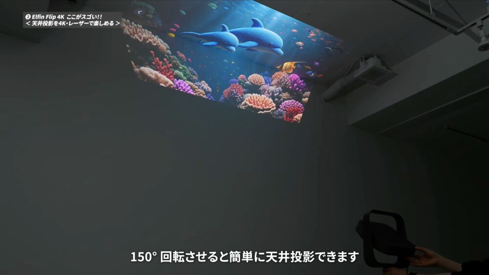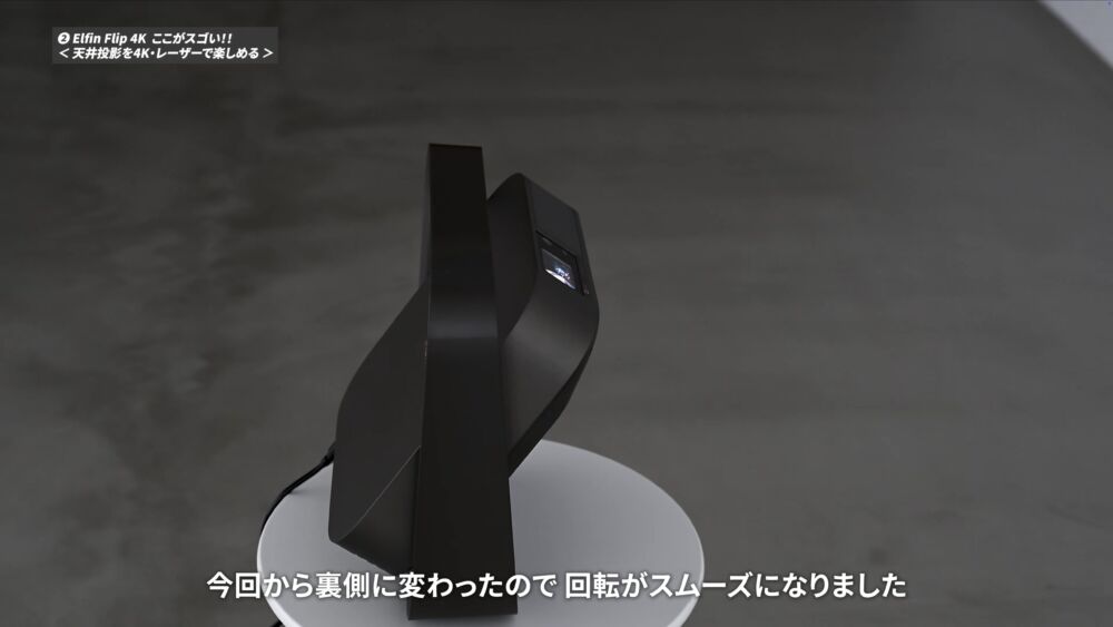 Elfin Flip Proの薄型ボディと天井投影の手軽さを継承しつつ、画質と機能性を据え置きハイエンド機のレベルにまで引き上げてきました。