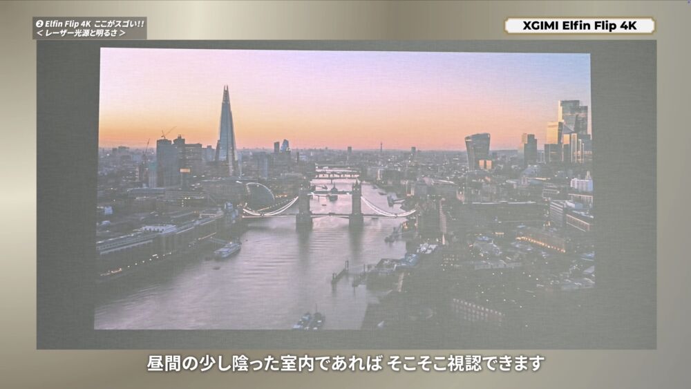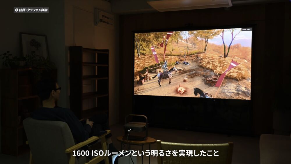 モバイルプロジェクターだと300〜500ISOルーメン程度がいわゆる「主戦場」ですが、Elfin Flip 4Kはその3〜5倍明るい計算に。