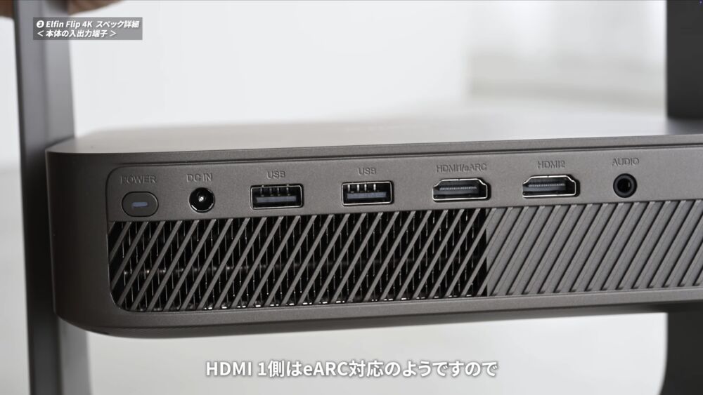 家庭用の「常設プロジェクター」レベルの明るさを、超薄型ボディに詰め込んできたのがElfin Flip 4Kです。