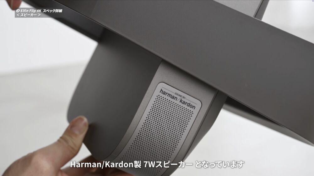 Elfin Flip 4Kのスピーカーは、Harman/Kardon製7Wを搭載。
