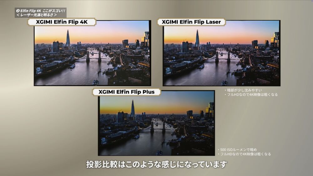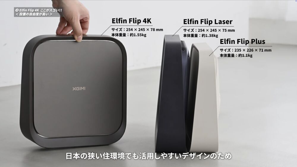 本記事では、実際に投影して確かめた進化ポイント、既存Elfin Flipシリーズとの違いまでまとめて解説します。