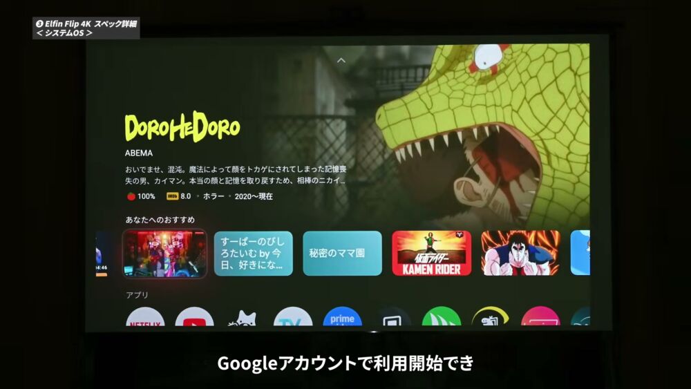 Google TVにはコンテンツ推薦のUIもあり、使い込むほど好みの作品を見つけやすくなっていきます。