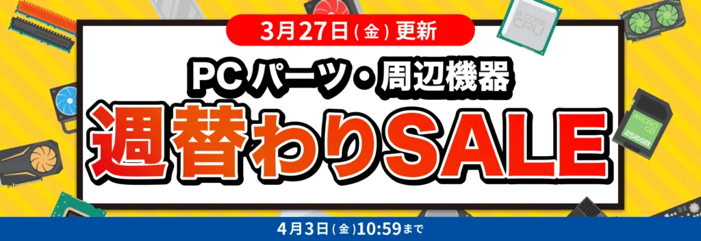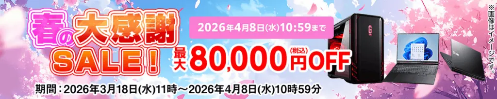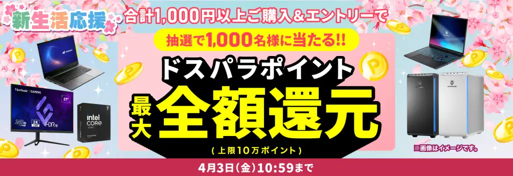 ドスパラは4月現在「新生活応援キャンペーン」を実施中です(〜4/3 金 10:59まで)。