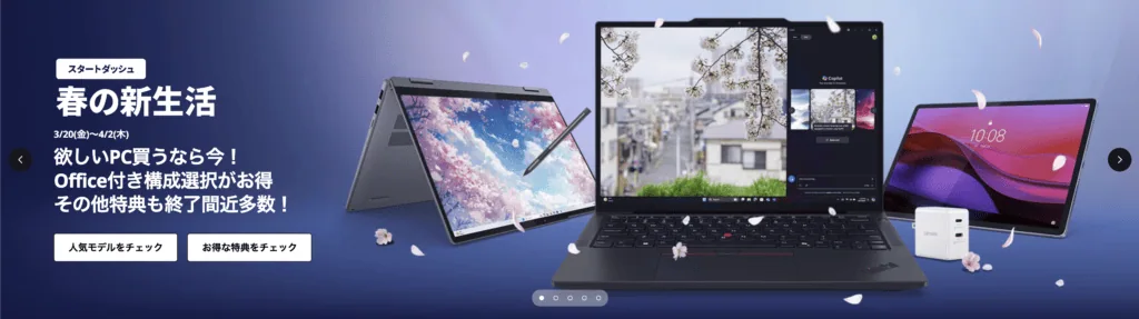 レノボは4/2(木)まで「春の新生活スタートダッシュキャンペーン」を開催しています。