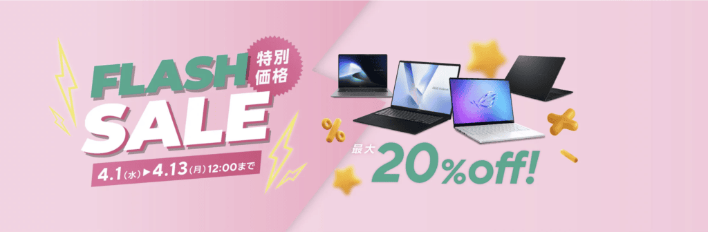 「FLASH SALE」は、ASUS Store限定の超特価製品を最大20%オフで紹介する、というものです。