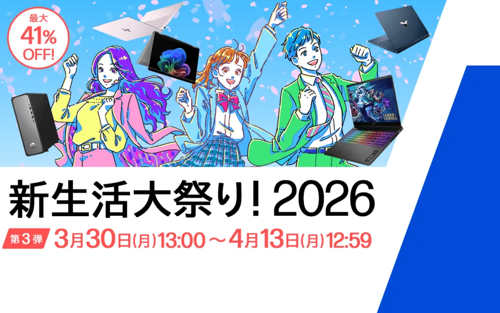 hpは現在「新生活大祭り 第3弾」を開催し、最大41%オフになるなど、かなり大がかりなセールとなっています。