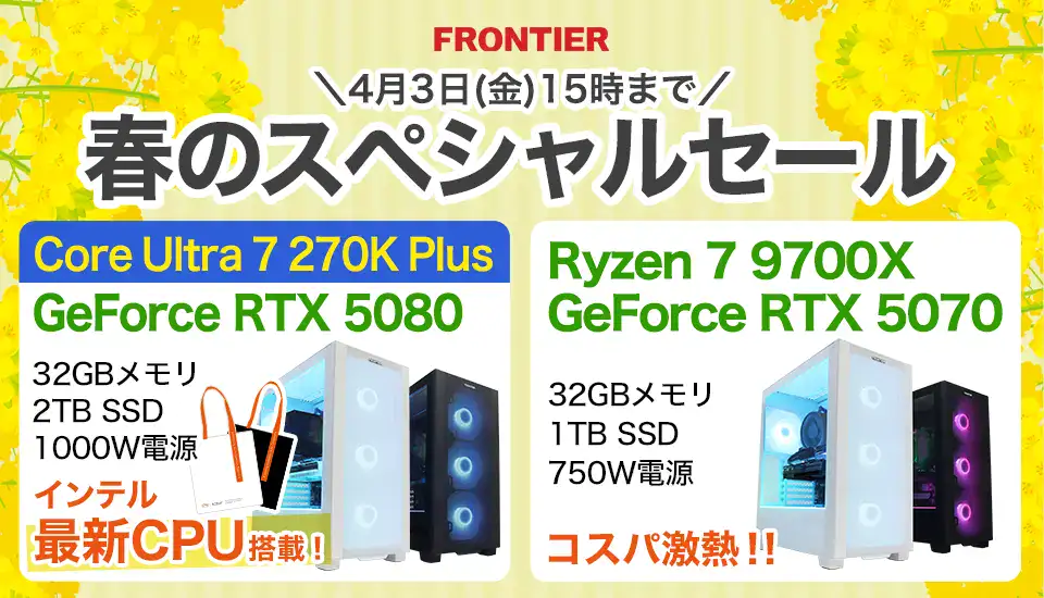 「春のスペシャルセール」は、即完売もめずらしくないほど毎度注目を集め、人気の構成や新パーツ搭載モデルを衝撃のコスパで購入することができるセールです。