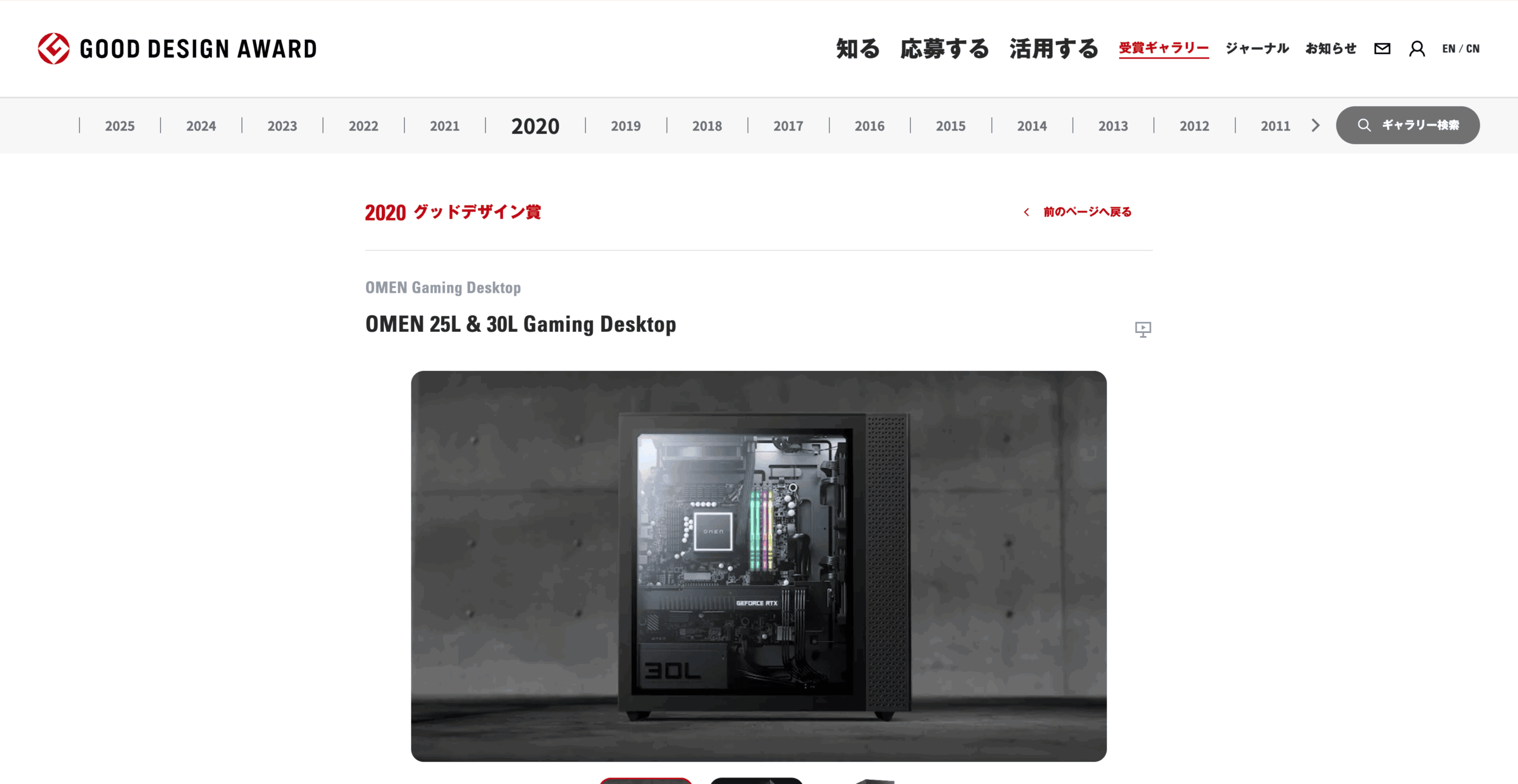 OMENはデザイン面で高く評価され、2020年にグッドデザイン賞を受賞しています。