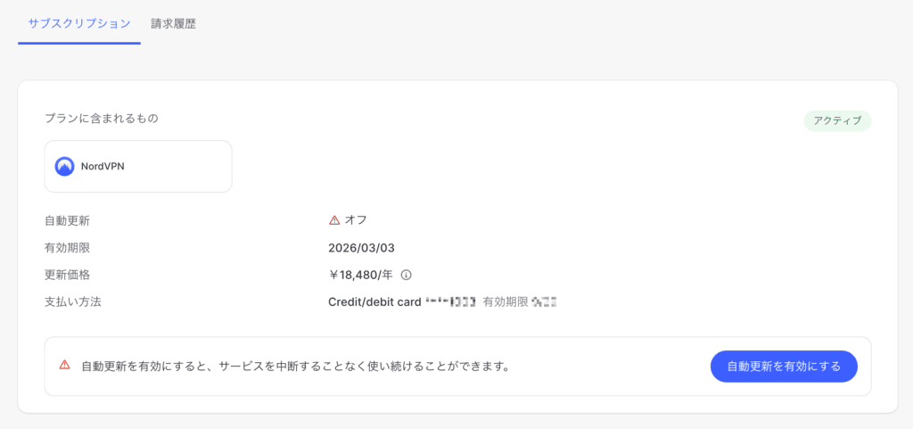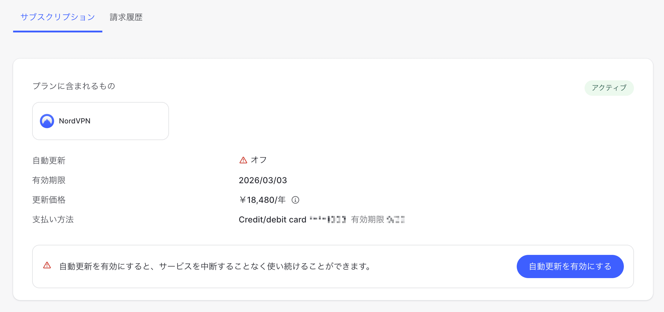 NordVPNを一定期間だけ利用したいと考えている人は、自動更新を忘れず停止しましょう。