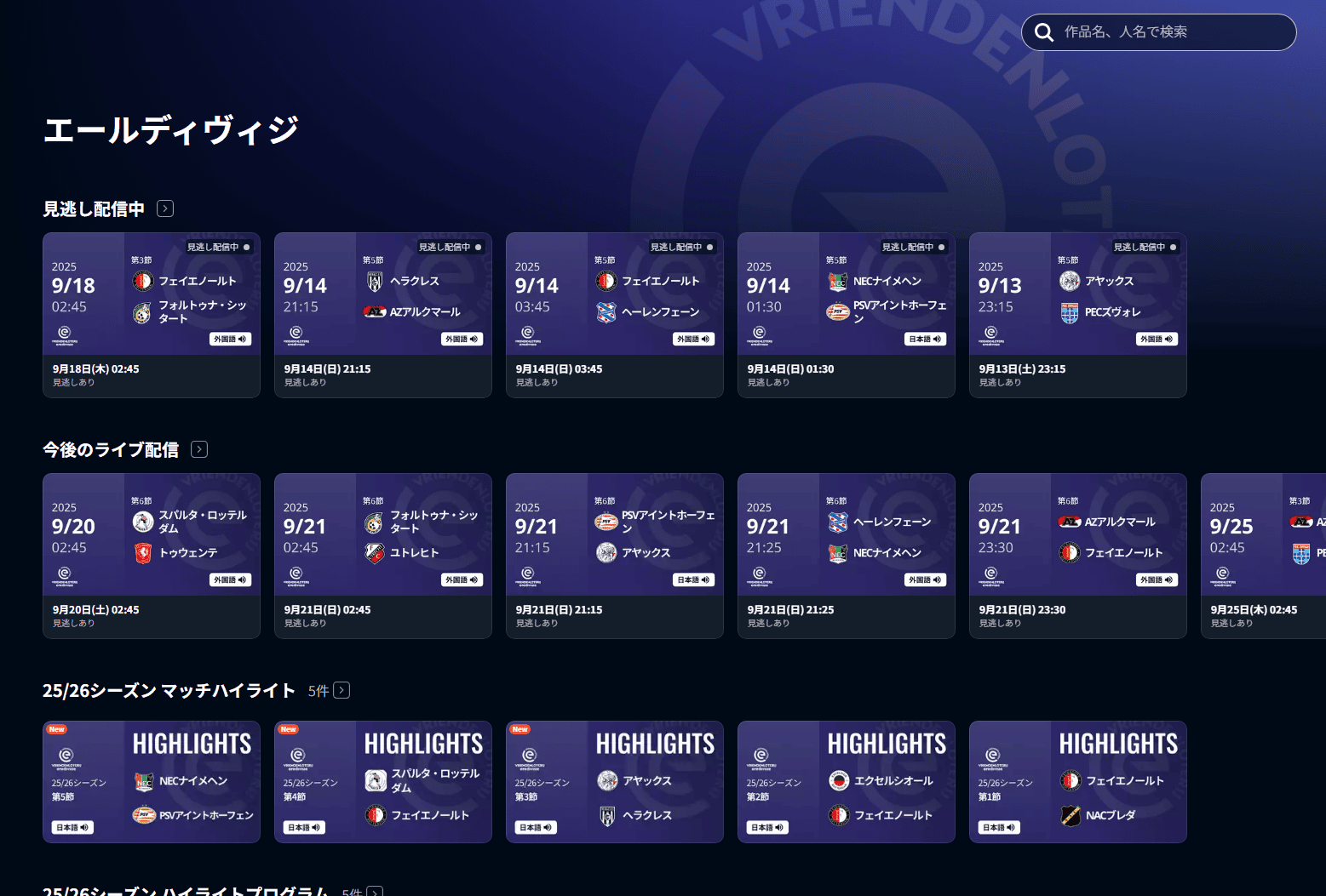 プレミアリーグのハイライトシーン集や関連動画にくわえ、スペインのラ・リーガ、オランダのエールディヴィジなど、他の欧州サッカー配信も見れるので覗いてみてください。