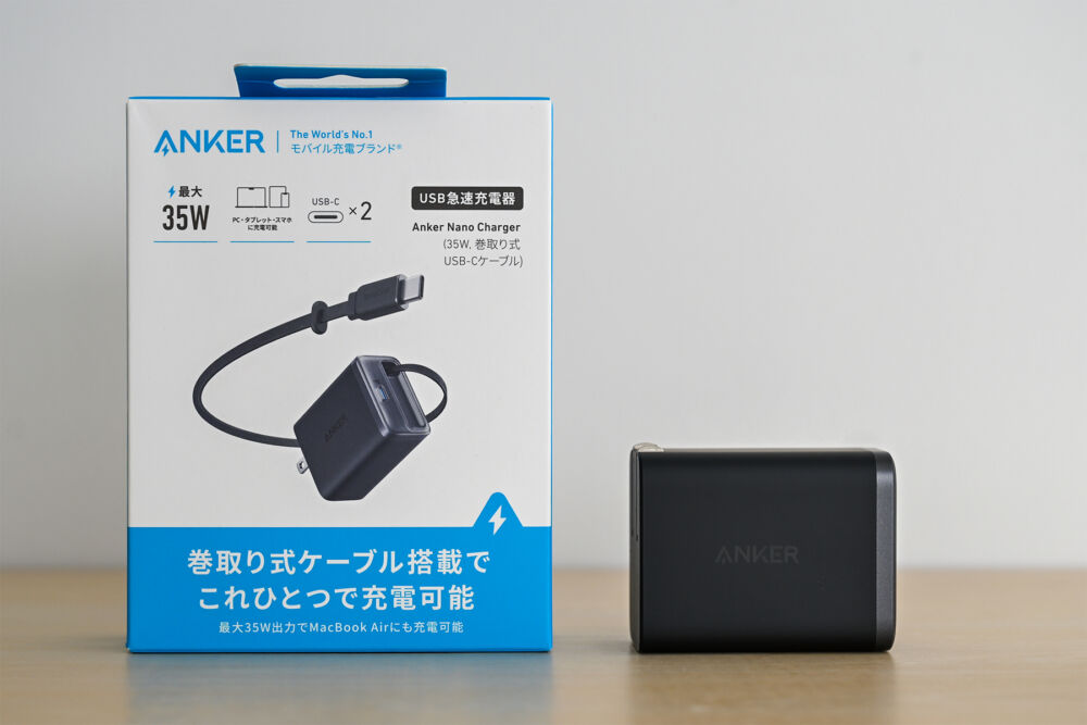 Anker Nano Charger (35W, Built-In 巻取り式 USB-Cケーブル)のレビュー