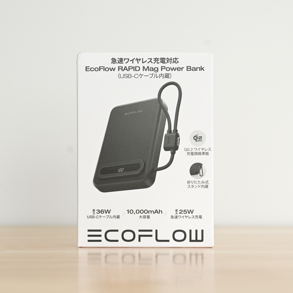 本記事ではQi2.2 25W EcoFlow RAPID Mag Power Bank(USB-Cケーブル内蔵,10,000mAh)をレビューしました。