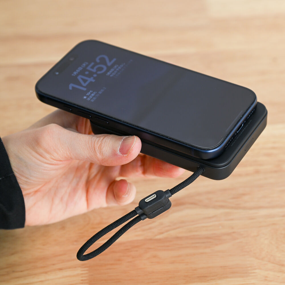 ワイヤレス充電速度は116分とQIROCAに迫る爆速ぶり。内蔵ケーブルがやや短く、紐状である点は好みが分かれるかもしれません。