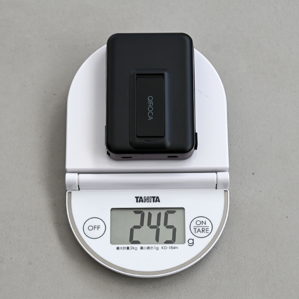 重量は約226gと、Qi2 25Wモバ充ではダントツの軽さです。