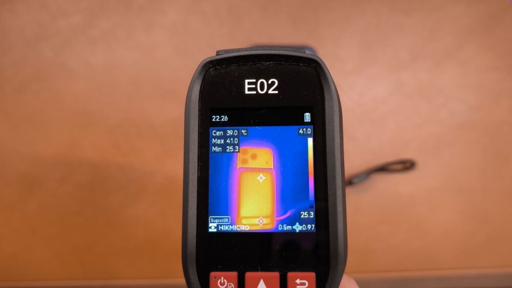 発熱もそこそこ優秀で、iPhone側が40℃行くかどうか、モバ充側はスタンド部分が若干熱く、最大41℃くらい。スタンドが金属製なので、この部分が若干熱くなりやすいようです。