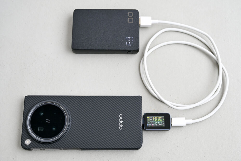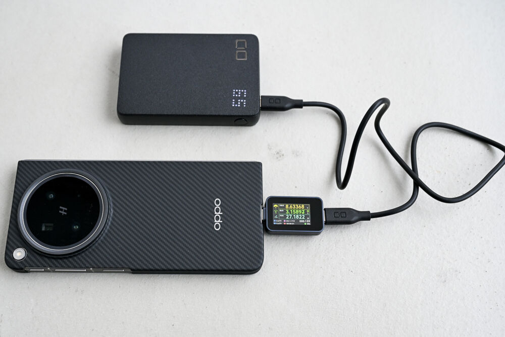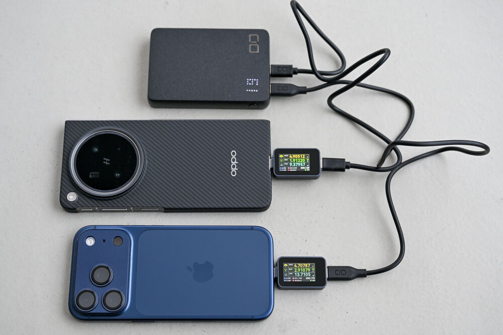 USB-A側は最大22.5W出力までカバーするものの、QC非対応デバイスは12W台におさまります。