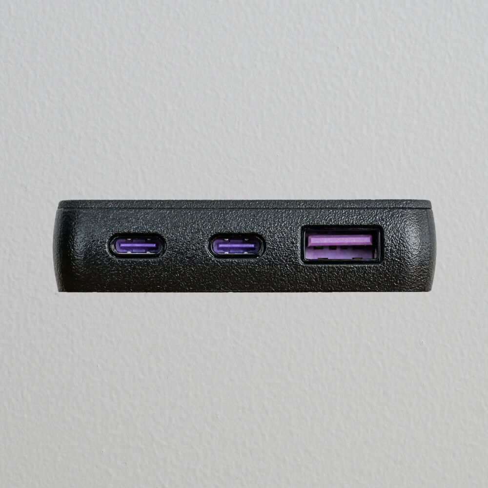 USB-Cポート x 2とUSB-Aポートで合わせて3ポート搭載し、最大3台同時充電も可能です。