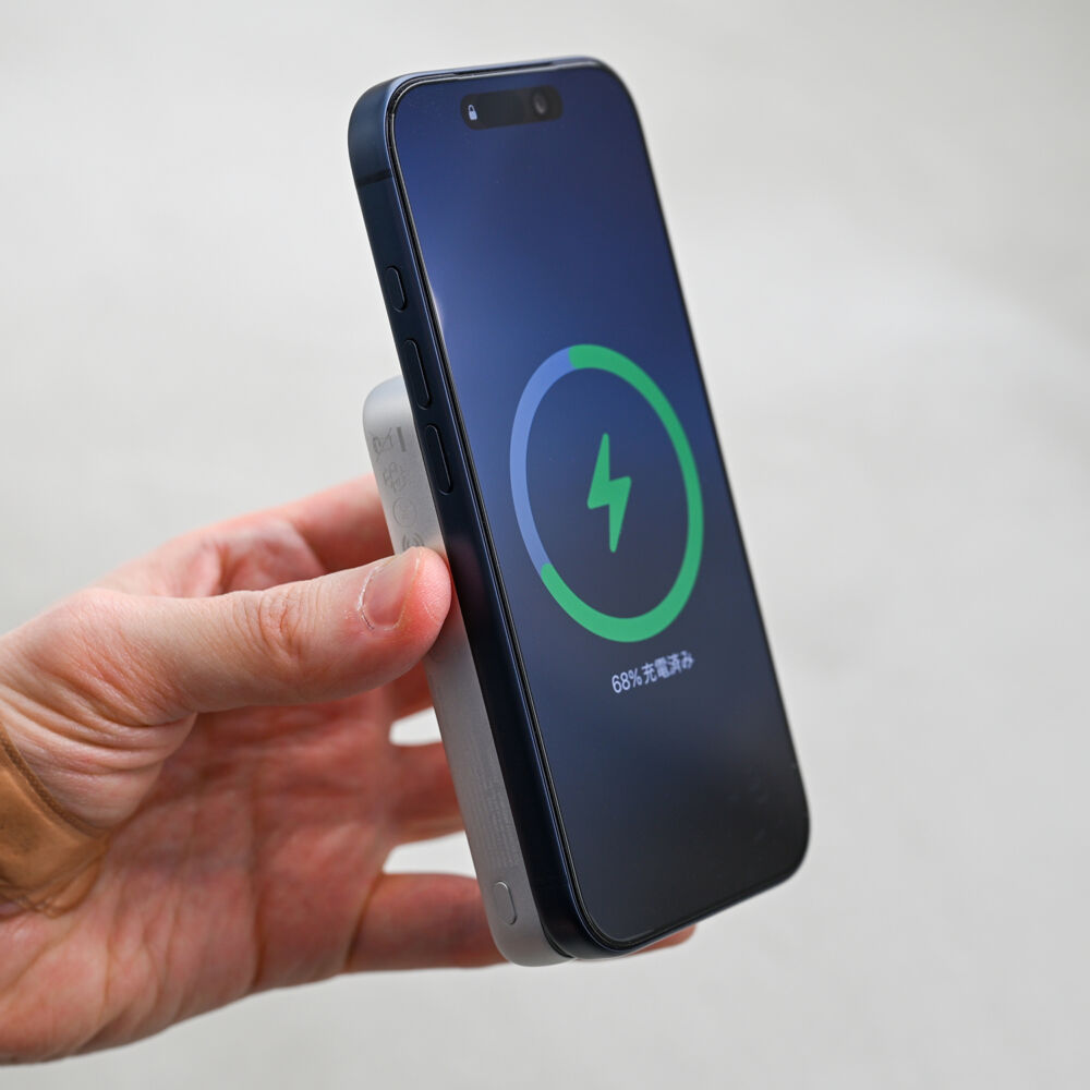 本機は8,000mAhモバ充で初のQi2 25Wに対応し、従来より速いワイヤレス充電を実現しています。