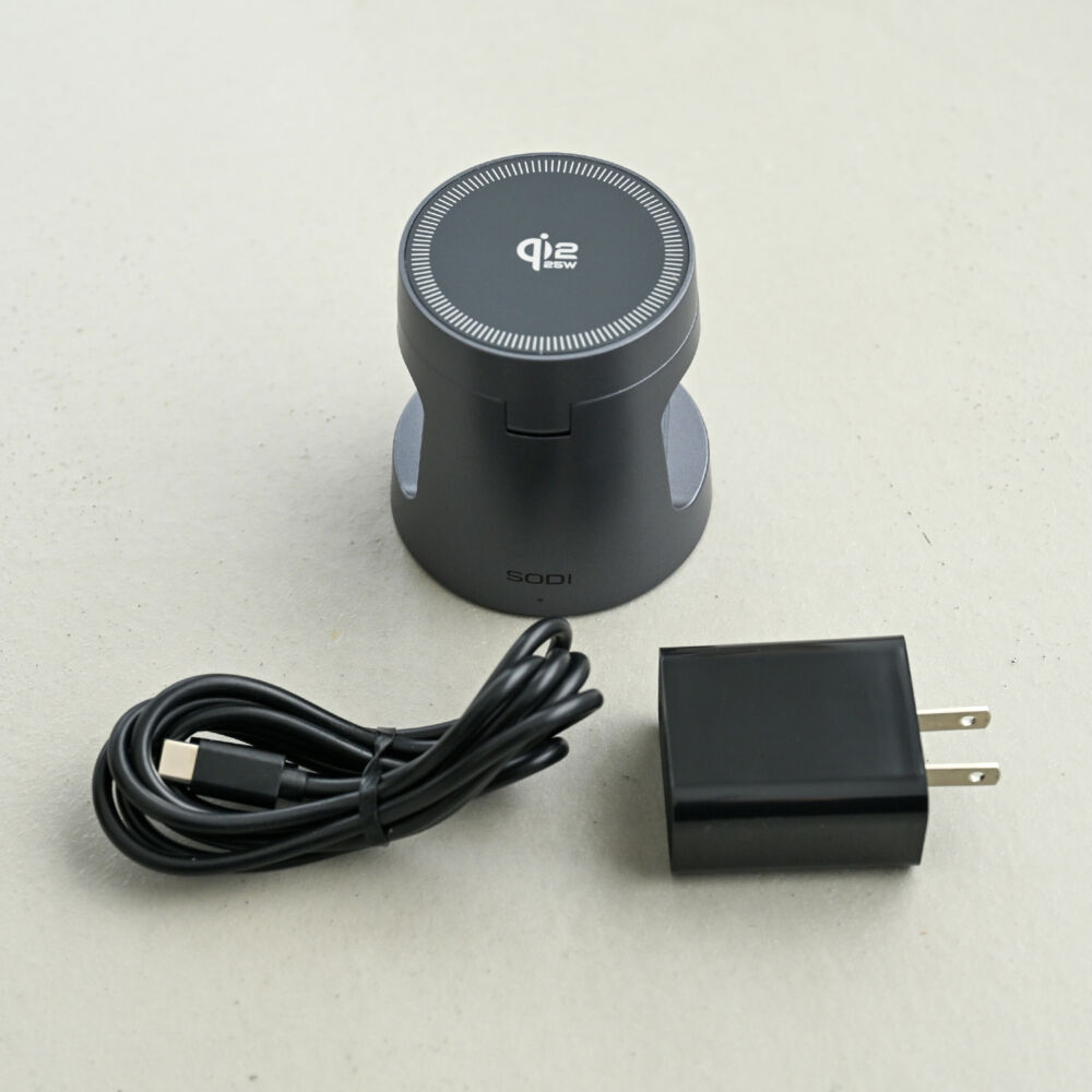 SODI Qi2.2 25W ワイヤレス充電器 3 in 1の外観と付属品